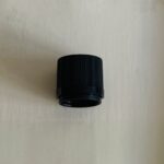 50 ml talpos mėlyno stiklo GL18 sriegio buteliukas, komplektuojamas kartu su juodos spalvos purkštuku ir skaidriu gaubteliu.