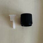 100 ml indeliams tinka aliumininis dangtelis, kodu: PR-18-100 arba juodo skaidraus plastiko dangtelis, kodu: PR-19-100.
